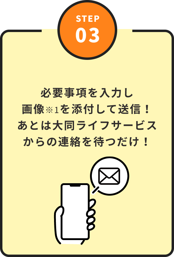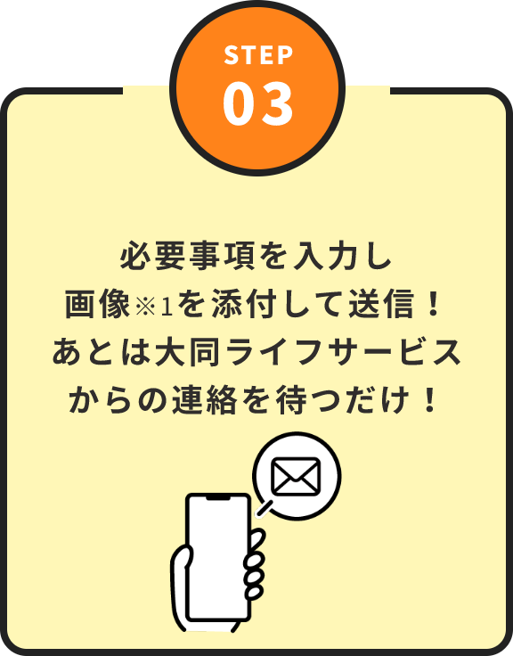 • 画像不鮮明等お見積りする際に確認事項が生じた場合、ご連絡させていただくことがあります。